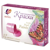 Набор акриловых красок Луч, перламутровые 12 цветов. На акриловой основе, в баночках с закручивающейся крышкой емкостью 15 мл. Без кисти. Преднозначены для нанесения на бумагу, картон, изделия из дерева, гипса, керамики. После высыхания образует водостойкий слой. Быстро сохнут, равномерно наносятся, приобретая глянцевую поверхность, не образует трещин после высыханияне, прекрасно смешиваются между собой. 382859