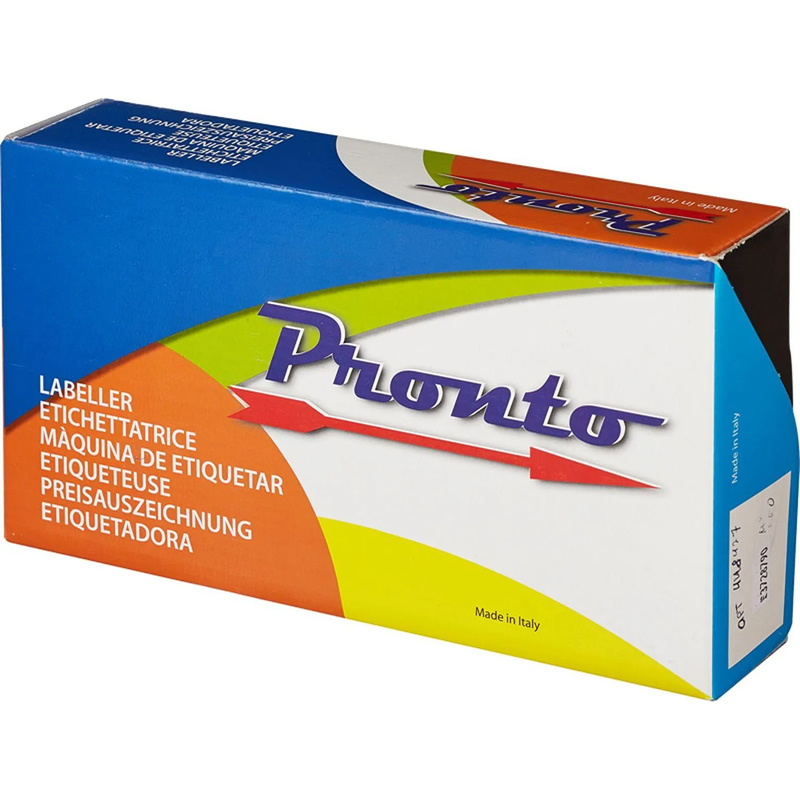 Однострочный этикет-пистолет Pronto C8, 8 символов в строке. Предназначен для проставления на продукцию даты, цены, артикула и прочей цифровой информации. В этикет-пистолете используется лента с этикетками типа волна размером 26×12 мм (поставляется без ленты). В комплекте один чернильный ролик (заряжен в пистолет).