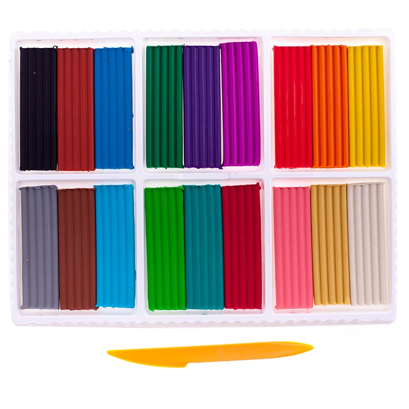 Пластилин 18 цветов Классика, со стеком. Набор для детского творчества. Не липнет к рукам, легко разминается и принимает необходимую форму. Вес 360 г. Торговая марка: Луч. Цвета: белый, желтый, красный, зеленый светлый, синий, черный, фиолетовый, оранжевый, красно-коричневый, изумрудный, фиолетово-розовый, розовый, коричневый, серый, голубой, бежевый, зеленый темный, рубиновый.