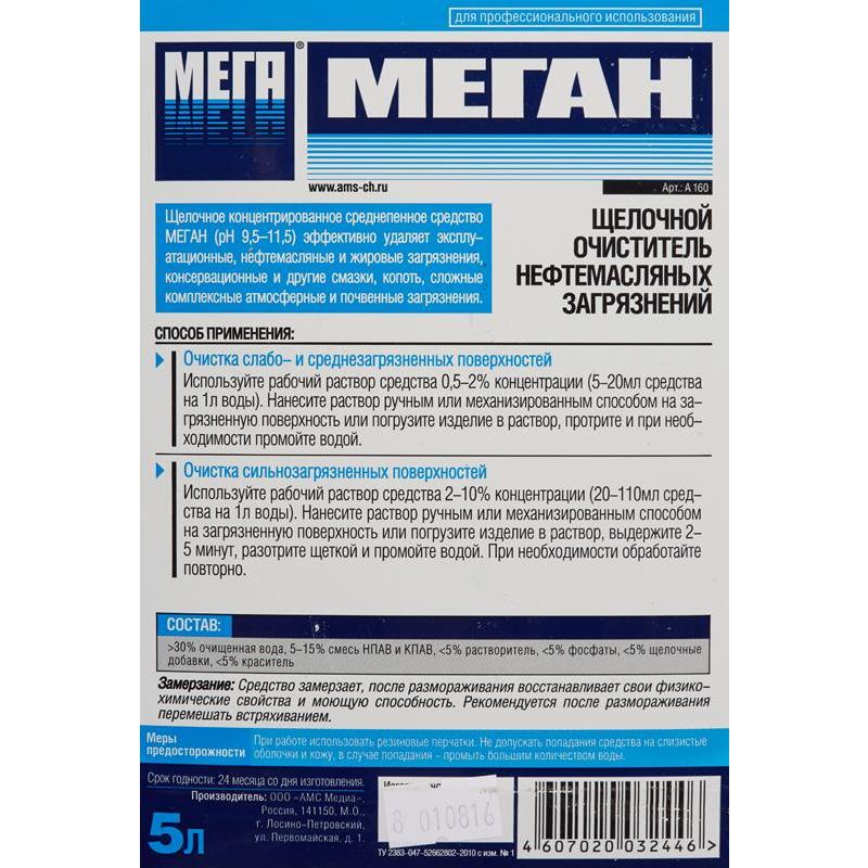 Профессиональный щелочной очиститель нефтемасляных загрязнений Меган 5 л