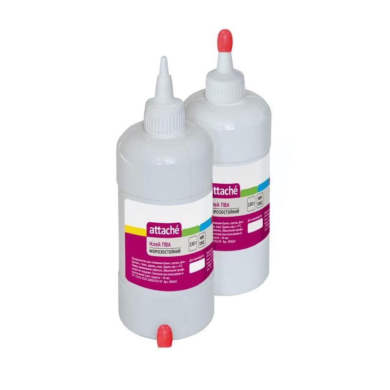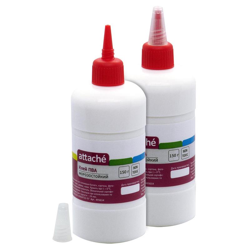 Клей ПВА Attache, 150 г, предназначен для склеивания бумаги, картона, дерева. Удобный съемный колпачок предохраняет от пересыхания. 495654