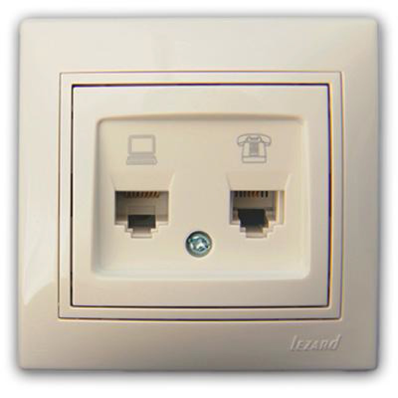 Розетка компьютерная/телефонная Mira двойная скрытого монтажа предназначена для подключения к сети Интернет и телефонии. Цвет кремовый. Размеры 80х80х42 мм. Торговая марка: Lezard. 450369