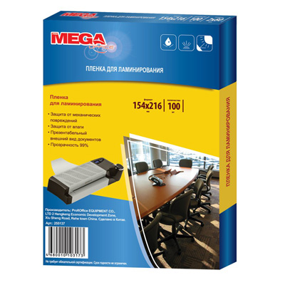 Пленка для ламинирования ProМEGA Оffice, 154х216 мм, 500 2х250 мкм, 100 л
