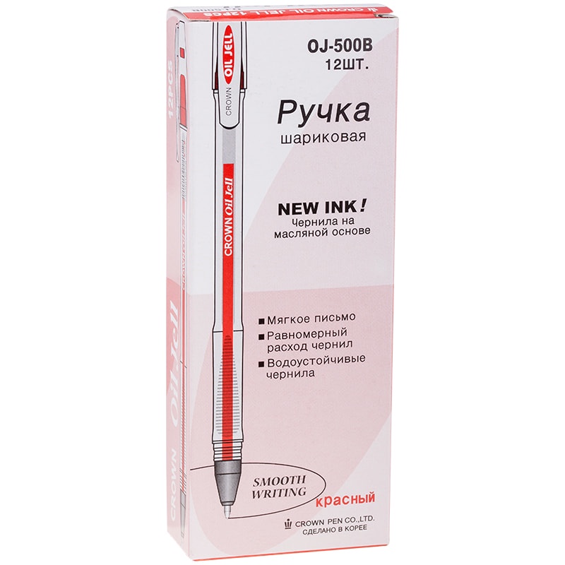Ручка шариковая Crown Oil Jell OJ-500B, цвет красный, на маслянной основе. Мягкое ровное письмо даже при низких температурах. Прозрачный корпус, трехгранный в зоне захвата, удобен для письма. Диаметр шарика - 0,7 мм. Шариковая неавтоматическая: Толщина линии 0,5 мм. Цвет чернил: красный. 210120