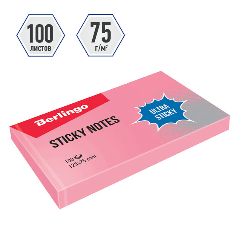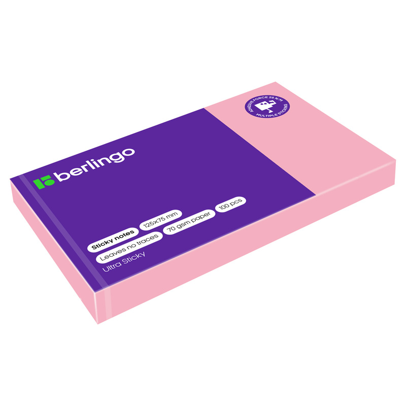 Стикеры Berlingo Ultra Sticky LSn_39303, 125х75 мм, розовые, пастельные, 100 л