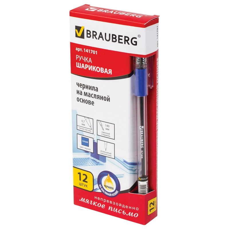 Ручка шариковая масляная BRAUBERG "Max-Oil", игольчатый узел 0,7 мм, линия 0,35 мм, синяя, 141701