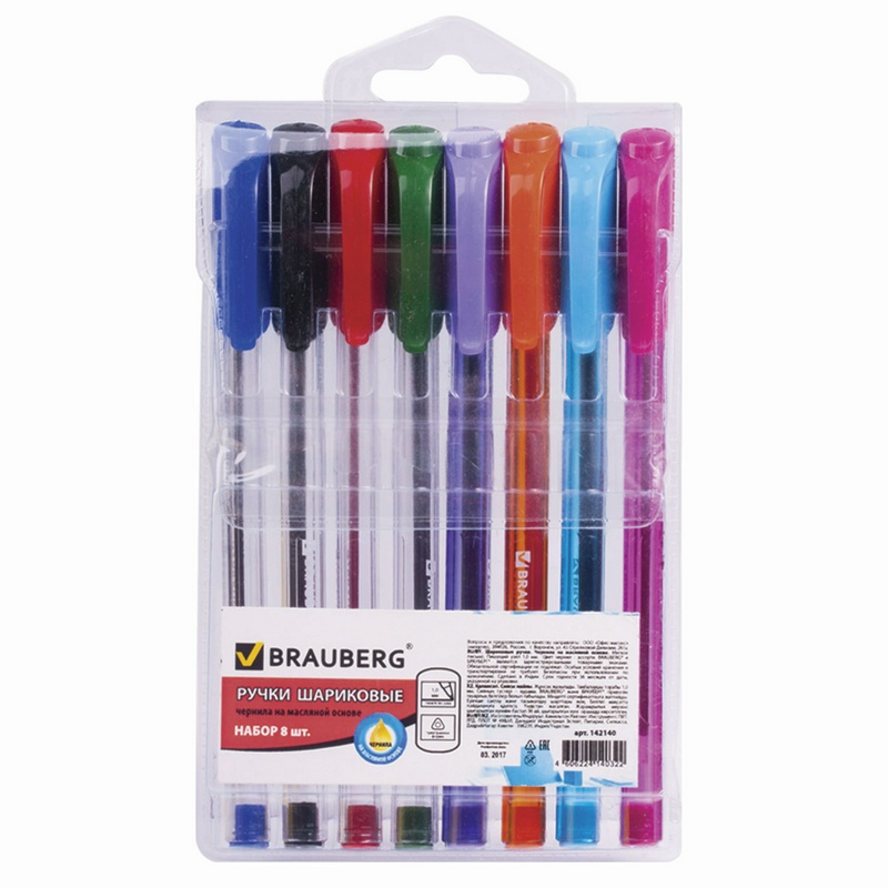 Ручки шариковые масляные BRAUBERG, набор 8 шт., "Extra Glide", узел 1 мм, линия 0,5 мм, ассорти, 142140