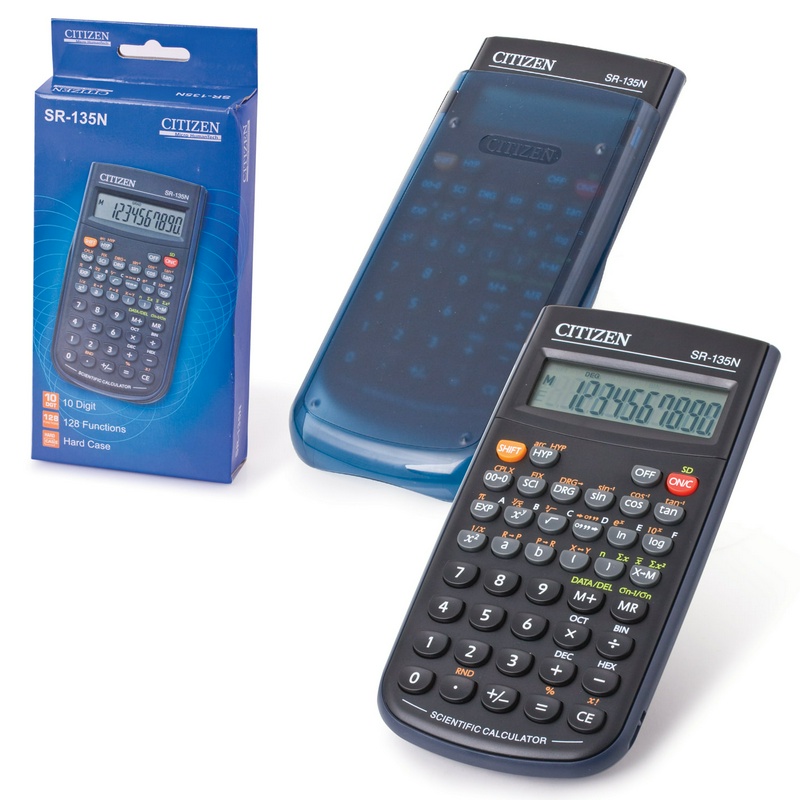 Калькулятор научный Citizen SR-135N 8+2 разрядный, цвет черный. Калькулятор сертифицирован к использованию на ЕГЭ в системе «Учсерт» Российской Академии Образования. Допускается на ЕГЭ по физике, химии, географии. Выполняет арифметические действия, 128 математических функций, статистические расчеты, операции с двоичными, восьмеричными, десятичными и шестнадцатеричными числами. Имеет защиту памяти при отключении питания. От случайного нажатия клавиатуру защищает подвижная пластиковая крышка. Элемент питания GPA76(LR44). Размер 78х141х12 мм. 149214
