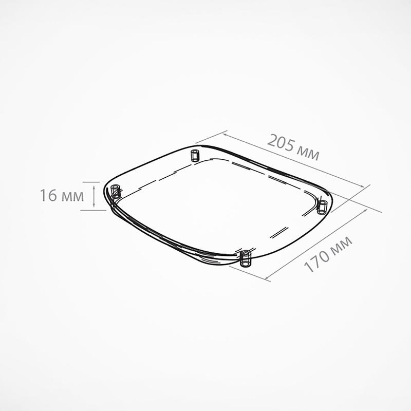 Монетница прямоугольная. Монетница для денег изготовлена из ударопрочного пластика, двухкомпонентная, прозрачная. Имеет 4 ножки с противоскользящими накладками. Размер информационного поля: 205х170 мм. Позволяет вставлять бумажную рекламную вставку. 410469