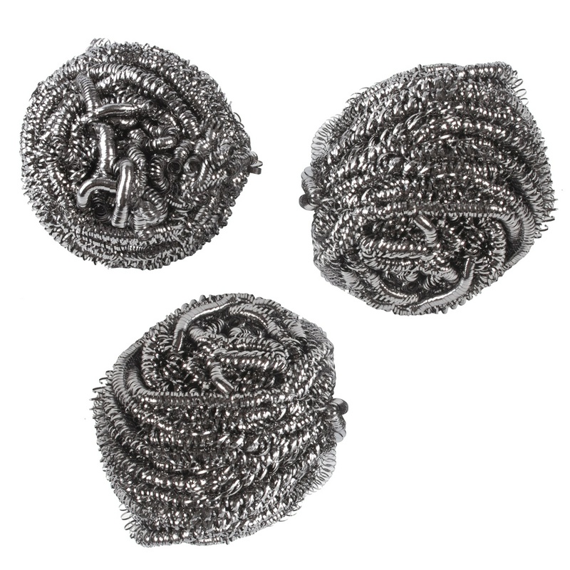 Губка для мытья посуды ЛАЙМА, 3 шт. упак. Не рекомендуется использовать для чистки тефлоновых поверхностей. Состав: нержавеющая сталь. Высота: 180 мм, ширина: 70 мм, глубина: 45 мм. Металлические губки отлично подходят для удаления сильных загрязнений. Имеют увеличенный срок службы, не окисляются, не боятся больших температур. Мочалка из нержавеющей стали прекрасно подойдет для удаления сильных загрязнений. С ее помощью можно прекрасно справиться с задачей механического соскребания застывших остатков пищи и отчистить практически все предметы для жарки: грили, барбекю и различные решетки. 603102