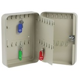 Шкаф для ключей BRAUBERG, на 48 ключей, цвет серый, размер 250х180х80 мм. В комплекте 48 брелоков, 2 ключа от замка, шурупы для крепления на стене. Изготовлен из прочной стали толщиной 0,8 мм и оснащен надёжным замком. Для размещения каждого ключа в шкафчике предусмотрен брелок, что очень удобно. Шкафчик великолепно впишется в интерьер любого офиса. 290338
