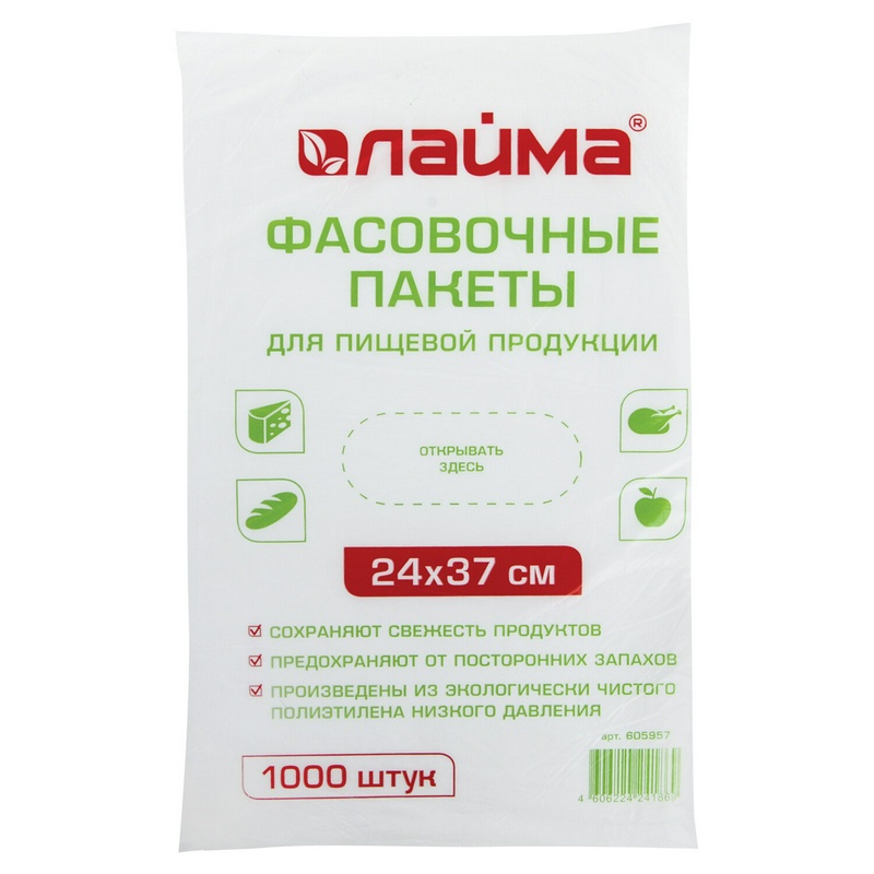 Пакеты фасовочные 24х37 см ЛАЙМА 605957, КОМПЛЕКТ 1000 шт, ПНД, 7 мкм, евроупаковка