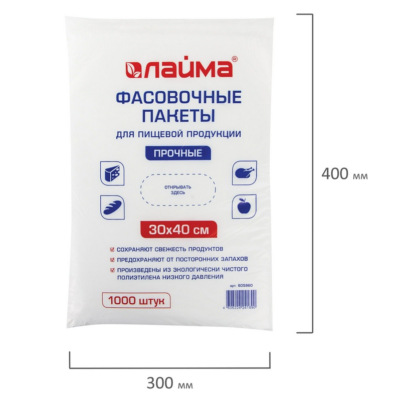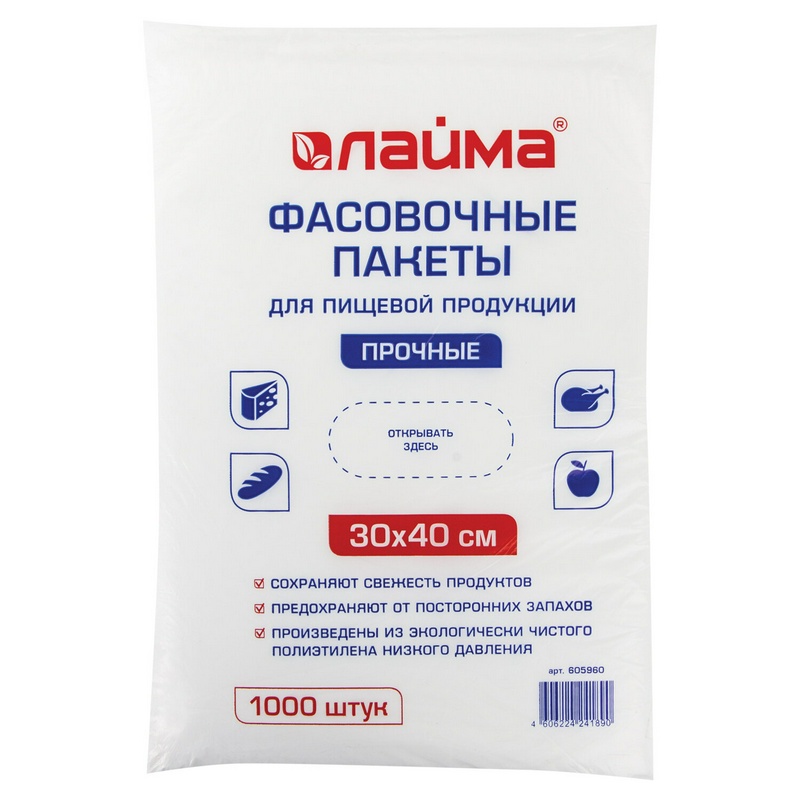Пакеты фасовочные 30х40 см ЛАЙМА 605960, КОМПЛЕКТ 1000 шт, ПНД, 10 мкм, ПРОЧНЫЕ, евроупаковка