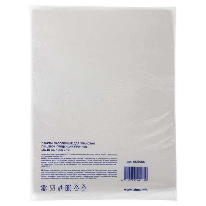 | Размер пакета: | 30х40 см |
