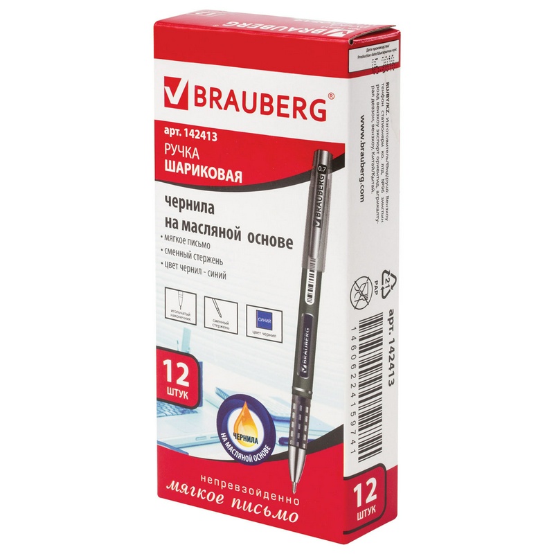 Ручка шариковая масляная BRAUBERG Choice 142413, СИНЯЯ, корпус с печатью, узел 0,7 мм, линия письма 0,35 мм