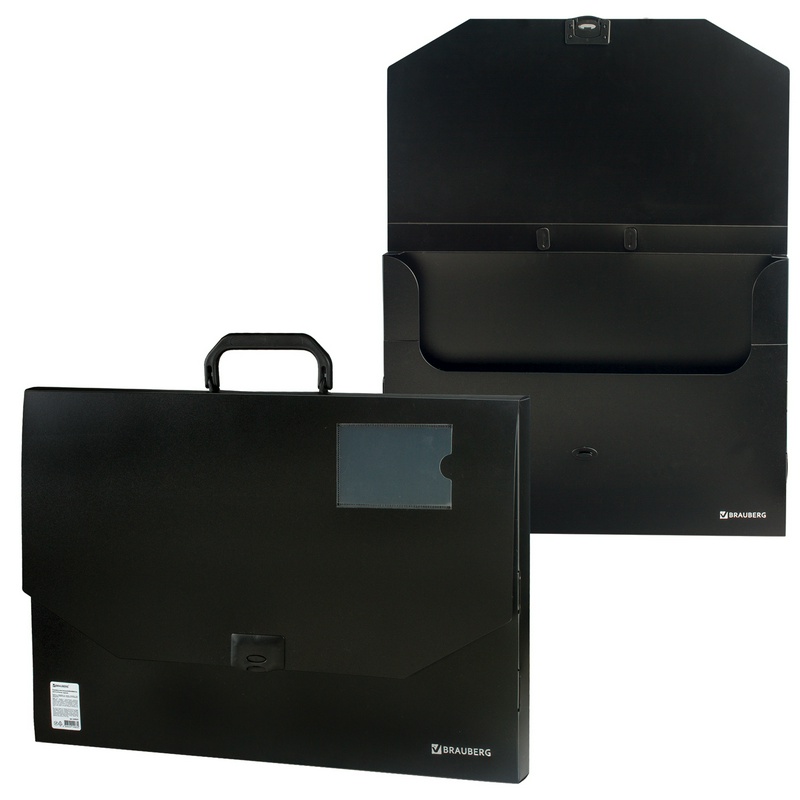 Папка-портфель пластиковая БОЛЬШОГО ФОРМАТА BRAUBERG ПОРТФОЛИО 226023, А3 (445х310х30 мм), черная