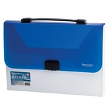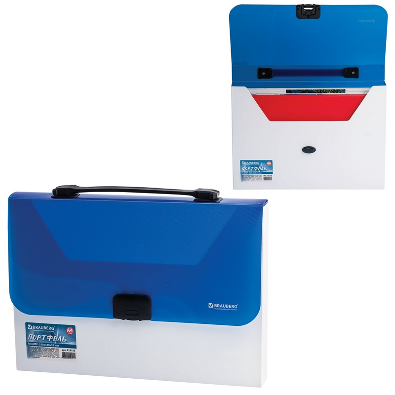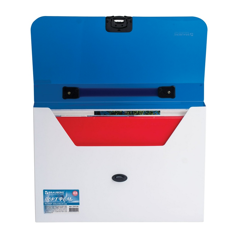 Папка-портфель пластиковая BRAUBERG INCOME 224150, А4 (350х235х35 мм), 1 отделение, фактура диагональ, белая/синяя