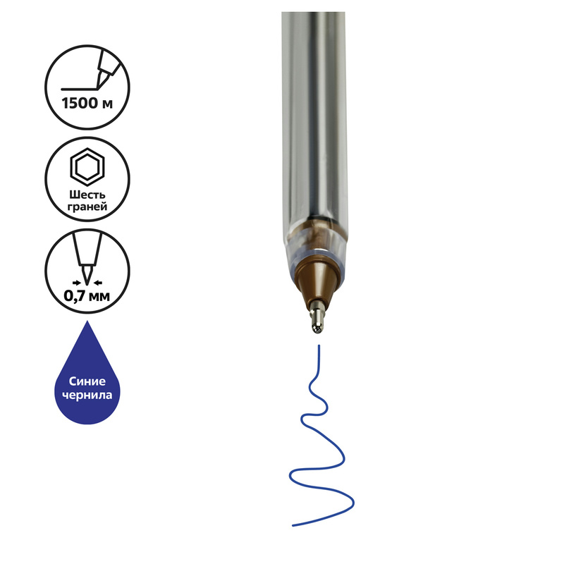 Ручка шариковая одноразовая синяя толщина линии 0.7 мм, СТАММ РШ-30354