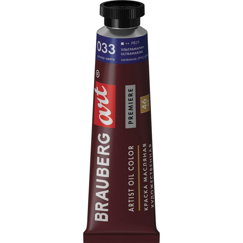 Краска масляная художественная Brauberg Art Premiere, 46 мл, профессиональная серия, ультрамарин, 191416