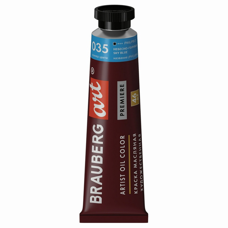 Краска масляная художественная Brauberg Art Premiere, 46 мл, профессиональная серия, небесно-голубая, 191414