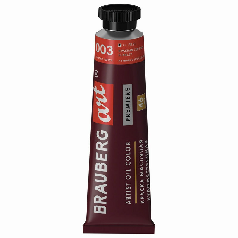 Краска масляная художественная Brauberg Art Premiere, 46 мл, профессиональная серия, красная светлая, 191407