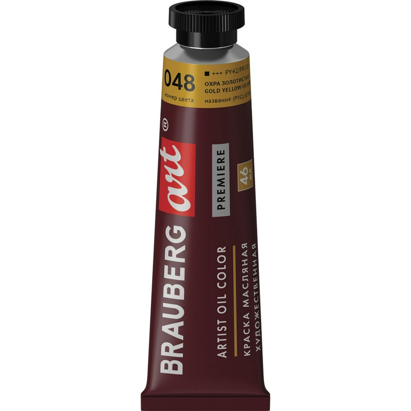 Краска масляная художественная Brauberg Art Premiere, 46 мл, профессиональная серия, охра золотистая, 191438