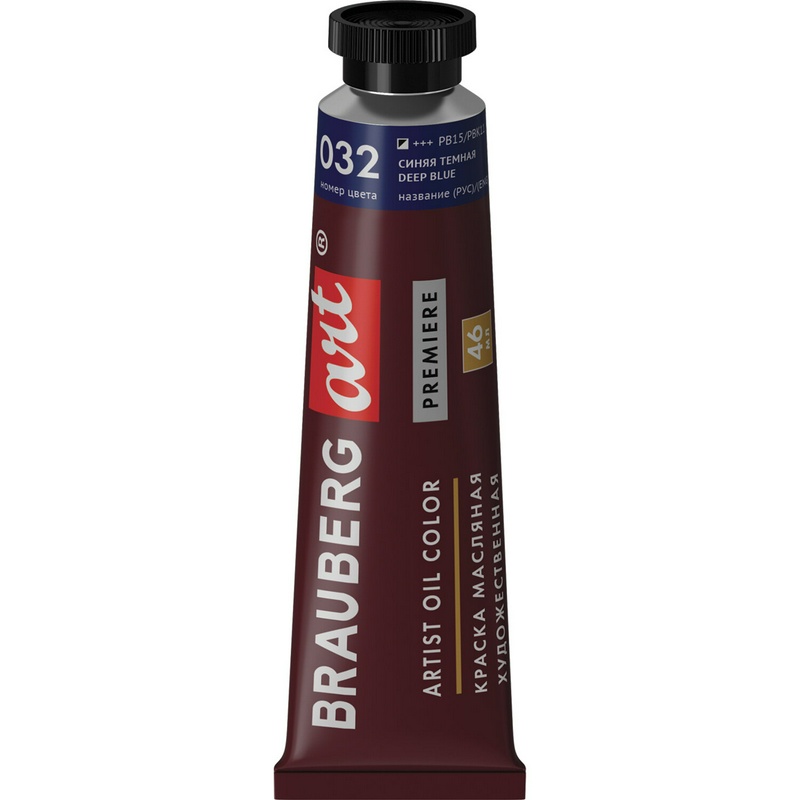 Краска масляная художественная Brauberg Art Premiere, 46 мл, профессиональная серия, синяя темная, 191418
