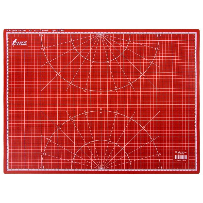 - Самовосстанавливающийся мат формата А2 (600х450 мм) выполнен из ПВХ толщиной 3 мм и имеет пятислойную структуру. Все 5 слоев коврика выполнены из высококачественных первичных материалов. Одна сторона коврика имеет разметку в сантиметрах, а другая - такую же сантиметровую разметку с добавлением фигур в виде транспортира. Коврик легко очищается мыльной водой.