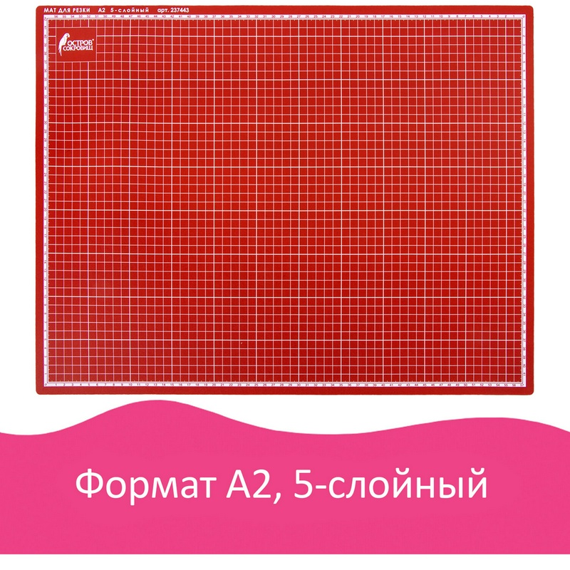 Коврик (мат) для резки ОСТРОВ СОКРОВИЩ, 5-ти слойный, А2 (600х450 мм), двусторонний, толщина 3 мм, 237443