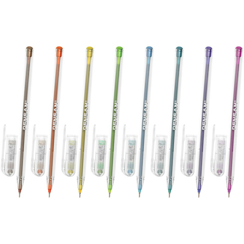 Шариковые ручки PENSAN My-Tech Colored с масляными чернилами. Ручки имеют круглый прозрачный корпус с деталями в цвет чернил. Удобная зона захвата снабжена рифлением, которое препятствует скольжению пальцев и обеспечивает комфортное письмо. - Стержень каждой ручки снабжен швейцарским никелево-серебряным игольчатым наконечником, обеспечивающим более качественное и долговечное письмо, а в совокупности с масляными чернилами пониженной вязкости гарантирует письмо без пропусков. Пишущий узел толщиной 0,7 мм проводит линию 0,35 мм. Стержень заменяем. - В дисплее представлены ручки ярких цветов ассорти: салатовый - 7 штук, бирюзовый - 7 штук, коричневый - 5 штук, фиолетовый - 13 штук, голубой - 4 штуки, розовый - 13 штук, оранжевый - 8 штук, желтый - 3 штуки.