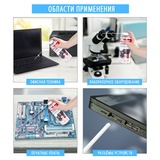 Подходит для очистки поверхностей печатных плат, линз оптических приборов, лабораторного, диагностического и другого деликатного оборудования. Распылительная головка с трубочкой позволяет контролировать направление и силу струи очистителя. Не оставляет следов при распылении.