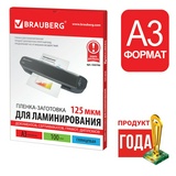 Пленки-заготовки для ламинирования БОЛЬШОГО ФОРМАТА, А3, КОМПЛЕКТ 100 шт., 125 мкм, BRAUBERG, 530799