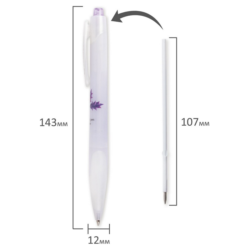 - Ручка с цветной печатью на корпусе и резиновым грипом для удобства письма, исключающим скольжение пальцев. Сменный стержень длиной 107 мм. Диаметр пишущего узла 0,7 мм создает ровную линию письма, равную 0,35 мм. Цвет чернил - синий. Оригинально оформленная, элегантная ручка с печатью на корпусе привлекут внимание как школьников, так и взрослых.