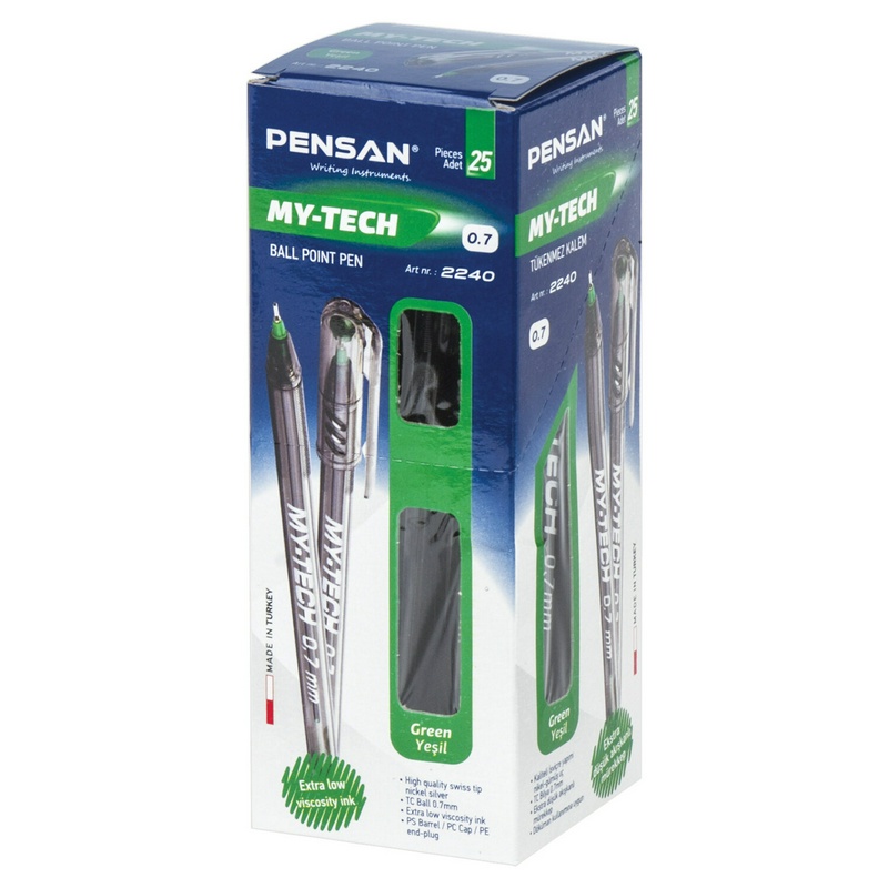 Ручка шариковая масляная PENSAN "My-Tech", ЗЕЛЕНАЯ, игольчатый узел 0,7 мм, линия 0,35 мм, 2240/25