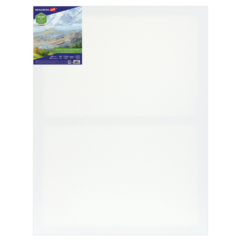Холст на подрамнике BRAUBERG ART CLASSIC, 60×80 см, 420 г/м², 45% хлопок 55% лен, среднее зерно, 191660
