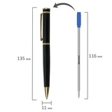 Ручка подарочная шариковая BRAUBERG "Perfect Black", корпус черный, узел 1 мм, линия письма 0,7 мм, синяя, 141416