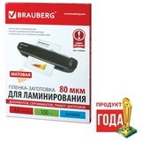 Пленки-заготовки для ламинирования А4, КОМПЛЕКТ 100 шт., 80 мкм, МАТОВАЯ, BRAUBERG, 530896