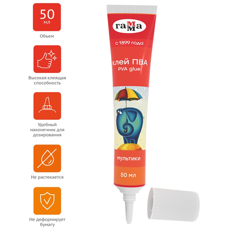 Клей ПВА Гамма "Мультики", в тубе, 50мл