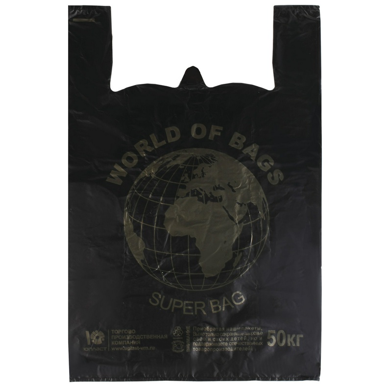 Пакеты "майка", 43+20х65 см, ПНД, "World", 30 мкм, ЧЕРНЫЕ, ЮПЛАСТ, ЮМАЙ1071