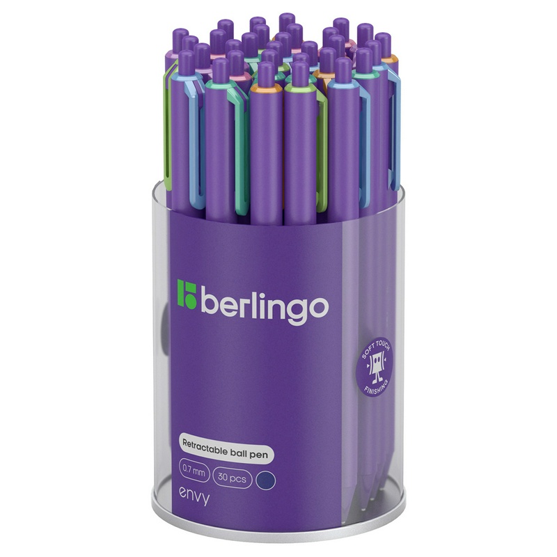 Автоматическая шариковая ручка Berlingo серии Envy выполнена в ярких фирменных цветах бренда с контрастными деталями. Soft touch покрытие корпуса придает ручке приятную бархатистую текстуру и солидный матовый внешний вид. Удобный клип оригинальной формы позволит легко закрепить ручку на кармане рубашки, ежедневнике или планшете. Чернила пониженной вязкости на масляной основе гарантируют максимальную легкость письма без усталости кисти. Диаметр пишущего узла 0,7 мм подходит для любого стиля письма. 350511