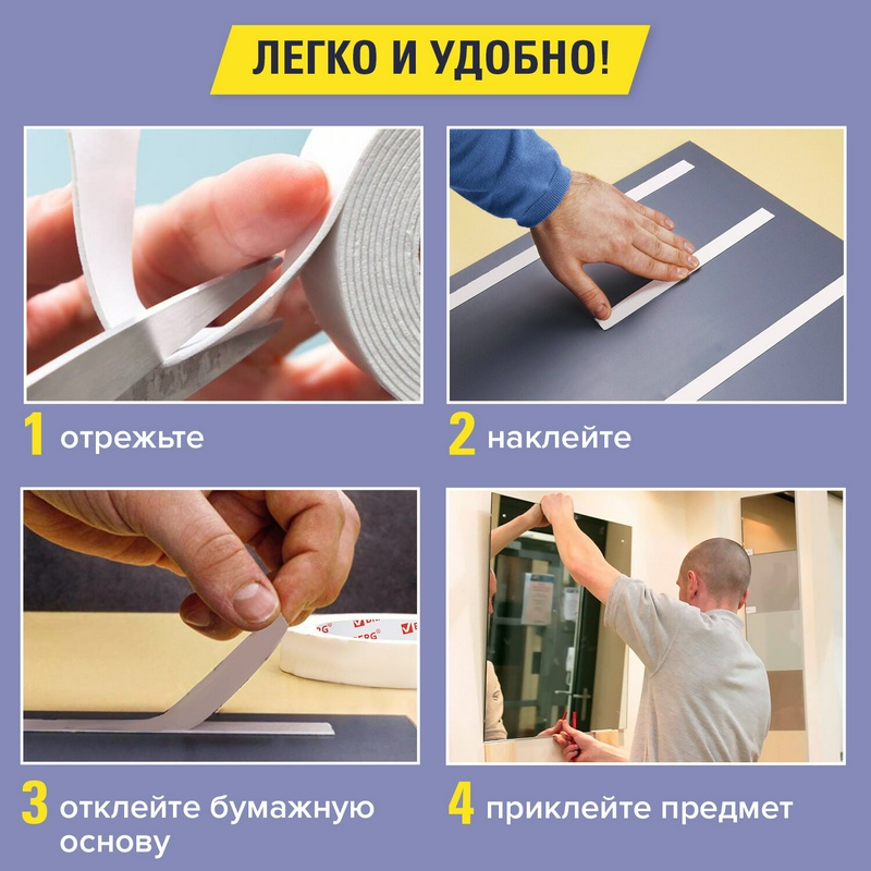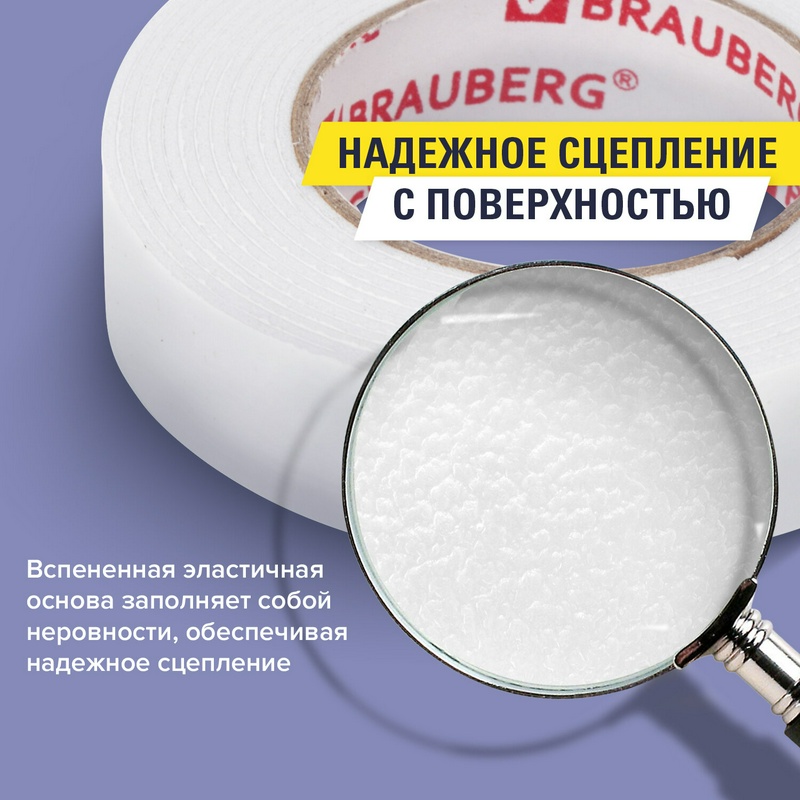 Двухсторонняя клейкая лента на вспененной основе BRAUBERG применяется для оформительских и ремонтных работ, крепления постеров, мелкой фурнитуры и т.д. Рекомендуется использовать при проведении интерьерных, ремонтных и монтажных работ, в быту и на производстве. Пружинящая вспененная основа заполняет все неровности, увеличивая площадь и качество сцепления. Это обеспечивает надежное крепление изделий к различным видам поверхностей: крашеным негладким стенам, дереву, кирпичу, кафельной плитке. Основа ленты - ЭВА. Длина - 2 м, ширина - 15 мм, толщина - 1000 мкм, цвет - белый. Упаковка - блистер с европодвесом.
