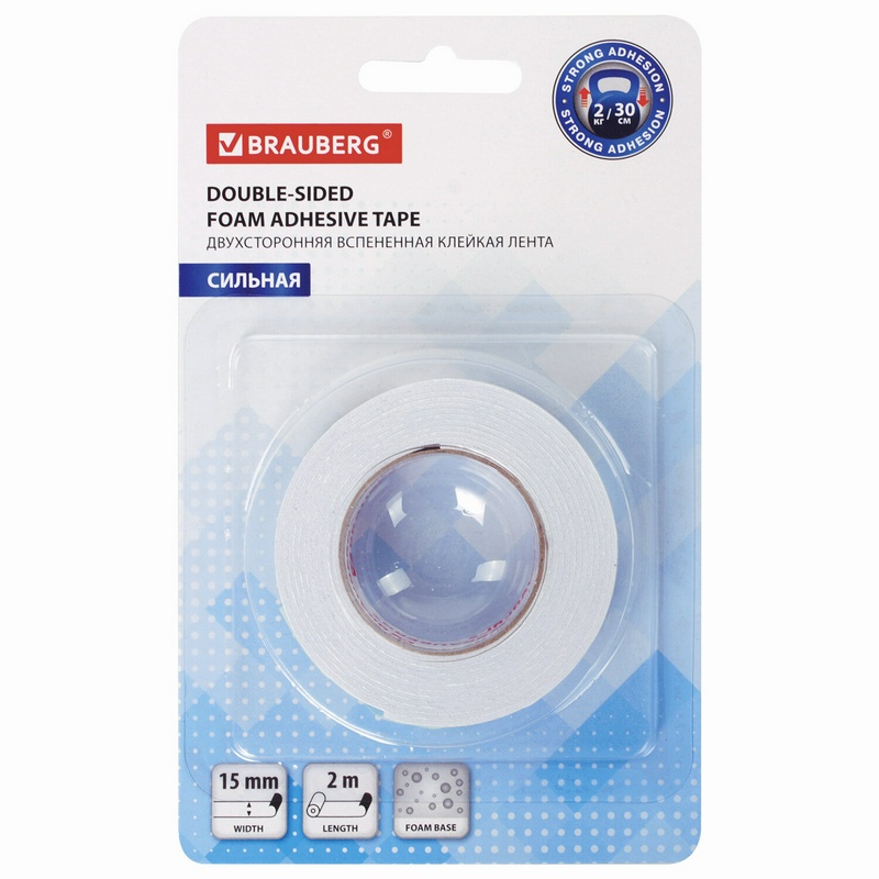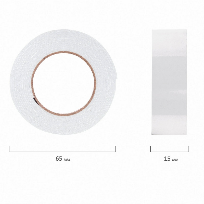 Клейкая двухсторонняя лента 15 мм х 2 м, НА ВСПЕНЕННОЙ ОСНОВЕ 1 мм, прочная, BRAUBERG, блистер, 606418