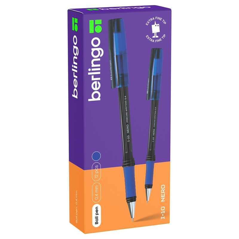 Стильная шариковая ручка Berlingo I-10 Nerо с чёрным корпусом и необычным тонированным пластиковым клипом, который соответствует цвету чернил – это надёжный помощник для учёбы или работы. Мягкий резиновый грип в зоне захвата способствует дополнительному удобству при письме. Качественные чернила на масляной основе обеспечивают четкое и ровное письмо. Цвет чернил – синий. Диаметр пишущего узла составляет 0,4 мм, благодаря чему ручка идеально подходит для быстрого стиля письма. Толщина линии письма 0,2 мм, а длина линии письма – 1000 м.