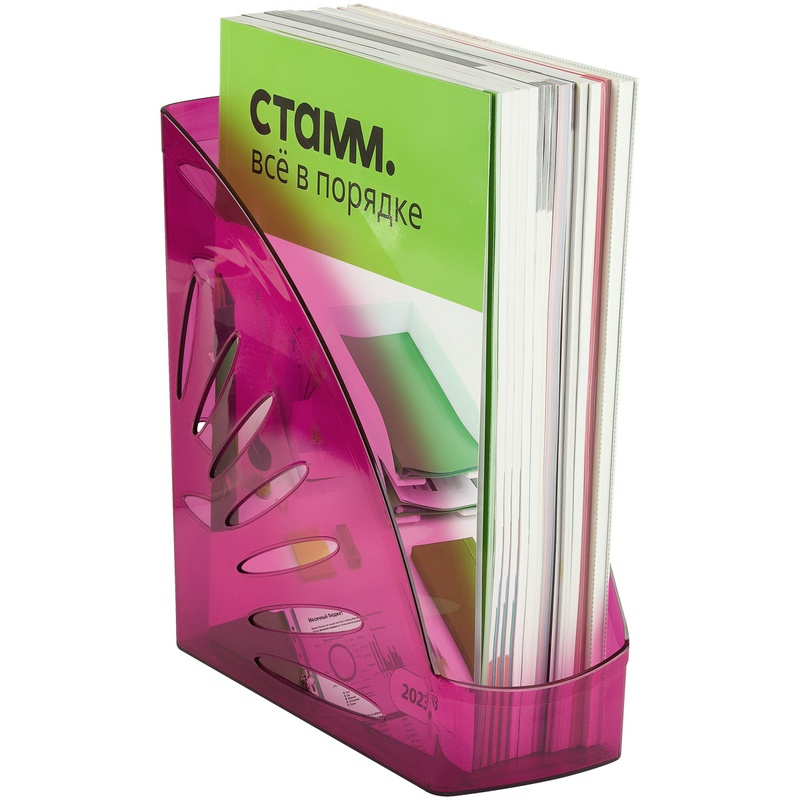 Лоток для бумаг вертикальный СТАММ "Тропик", тонированный розовый, ширина 110мм