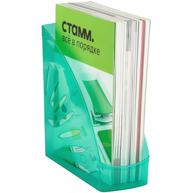 Лоток для бумаг вертикальный СТАММ "Тропик", тонированный мятный, ширина 110мм