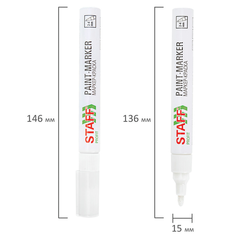 СПОСОБ ПРИМЕНЕНИЯ: 1. Перед использованием хорошо встряхнуть с закрытым колпачком. 2. Снять колпачок, надавить наконечником на поверхность. 3. Подождать 20 секунд, когда краска полностью пропитает наконечник. 4. После использования плотно закрыть колпачок. Высококачественные чернила белого цвета с лаковым эффектом идеально подходят для нанесения долговечной маркировки на любые поверхности. Благодаря усиленной формуле чернил краска ложится ровным слоем, полностью закрашивая поверхность. С помощью круглого прочного наконечника, выполненного из пористого акрила с шириной линии письма 2-4 мм, можно легко наносить широкие линии равномерным и однородным слоем. Быстросохнущие чернила предотвращают смазывание в процессе маркировки. После высыхания надписи становятся термо- и водостойкими, а также устойчивыми к выцветанию и механическому истиранию. Отлично подходит для маскировки бытовых дефектов, таких как царапины и сколы. Надежный помповый механизм подачи чернил предотвращает вытекание и разбрызгивание в процессе использования, а также преждевременное высыхание. Корпус маркера выполнен из алюминия, внутри находятся 2 металлических шарика для взбалтывания краски. Цвет колпачка соответствует цвету чернил. Это товар эконом-сегмента, поэтому он отличается привлекательной ценой. Товар обладает базовым набором характеристик и простой упаковкой, при этом полностью соответствует основным требованиям потребителей.