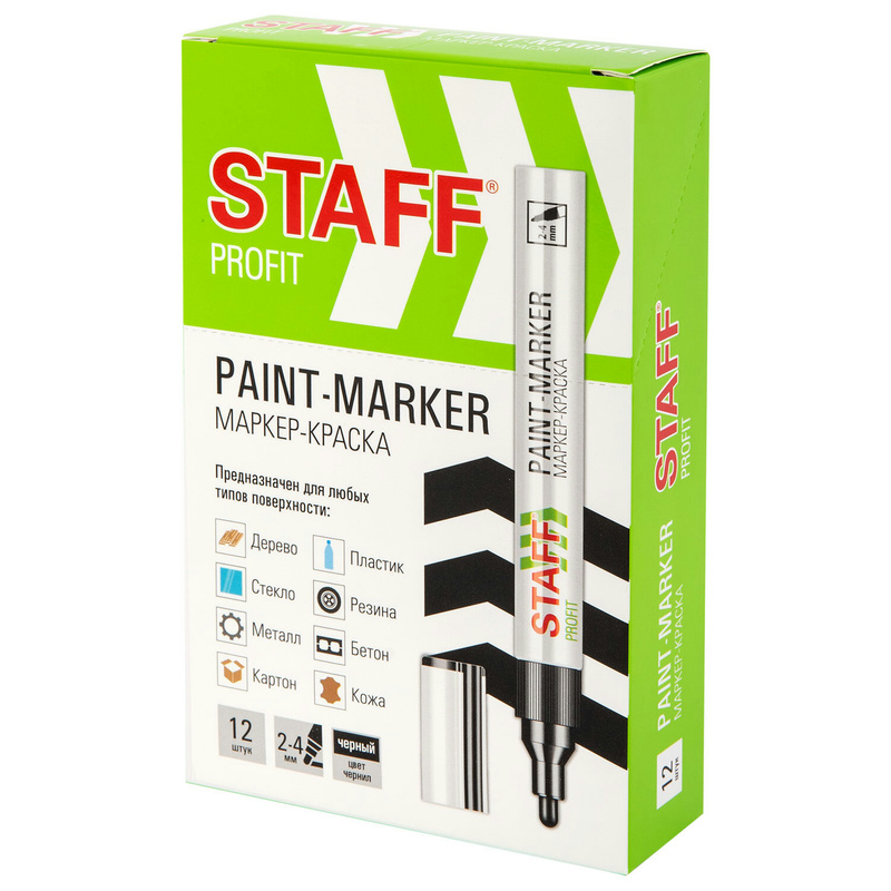 Маркер-краска лаковый (paint marker) 2-4 мм, ЧЕРНЫЙ, НИТРО-ОСНОВА, STAFF PROFIT, для любых поверхностей, 152578