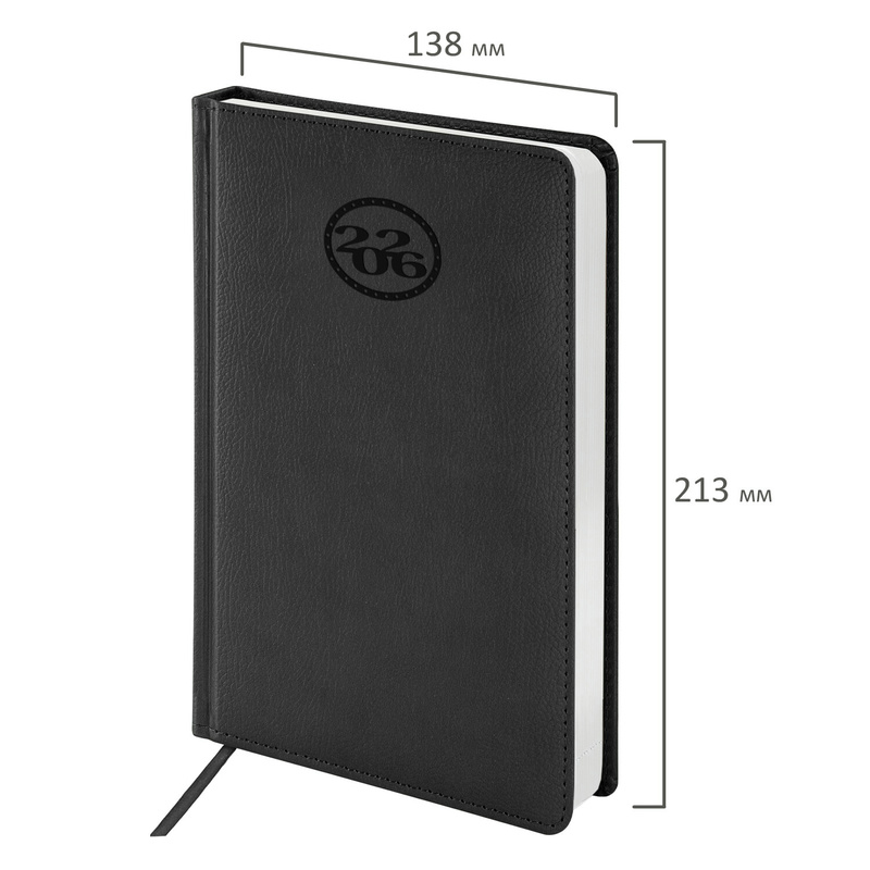 Ежедневник датированный 2026, А5, 138x213 мм, BRAUBERG "Favorite", под кожу, черный, 117037