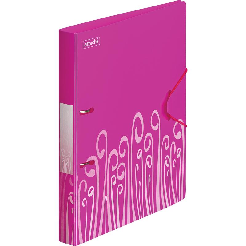 Папка пластиковая 2 кольца, формат А4 Attache Fantasy цвет розовый, с узором. Диаметр кольца 30 мм. Ширина корешка - 35 мм. Закрывается с помощью удобной боковой резинки. Вмещает до 300 листов стандартной плотности. 314649