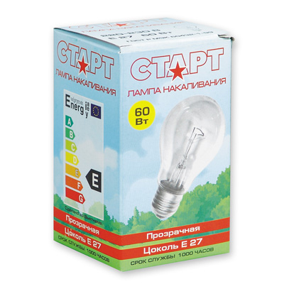 Лампа накаливания Старт, стандартная прозрачная, 60 Вт, цоколь E27